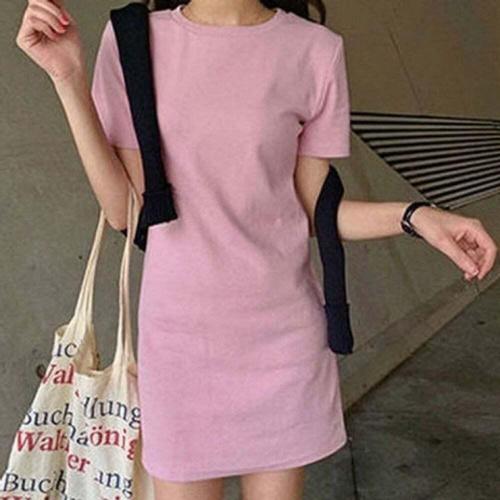 [셀럽하우스]무지 DZPI7625 슬림 드레스 반팔 셔츠