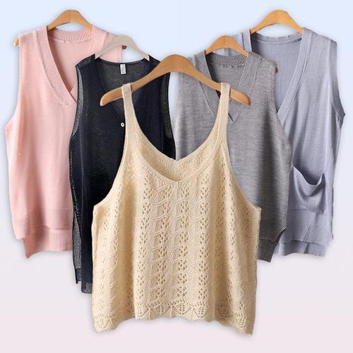 여성큰옷 빅사이즈 브이 롱 조끼 니트 베스트 뷔스티에 봄 여름 중년 미시