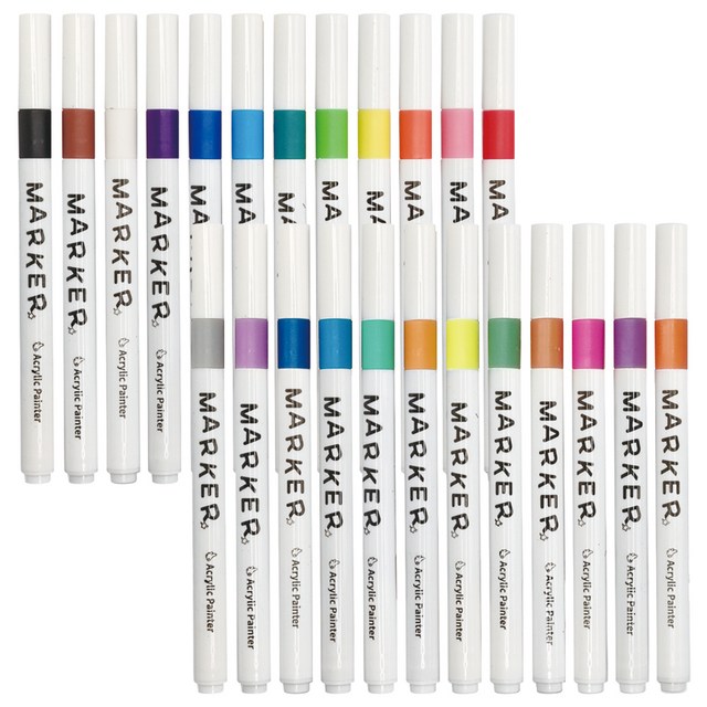 셔틀 아트 25가지 색상의 듀얼 팁 아크릴 페인트 마커 브러시 및 파인 펜 락 세라믹 우드 캔버스 플라스틱