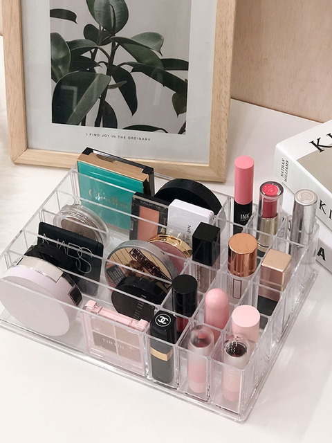 TEMU 1개 대형 투명 아크릴 분할 수납칸 메이크업 정리함 - 화장대 및 조리대용 투명 브러쉬 홀더, , 립스틱, 아이섀도우용 다중 수납칸 - 뷰티 루틴 필수품 및 휴일 선물