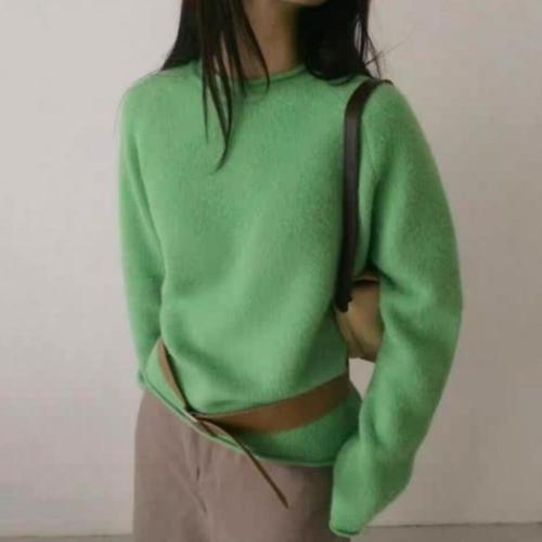 [셀럽하우스]여성 ELHJ9783 겨울 부드러운 앙고라 라운드넥 긴팔 크롭 니트