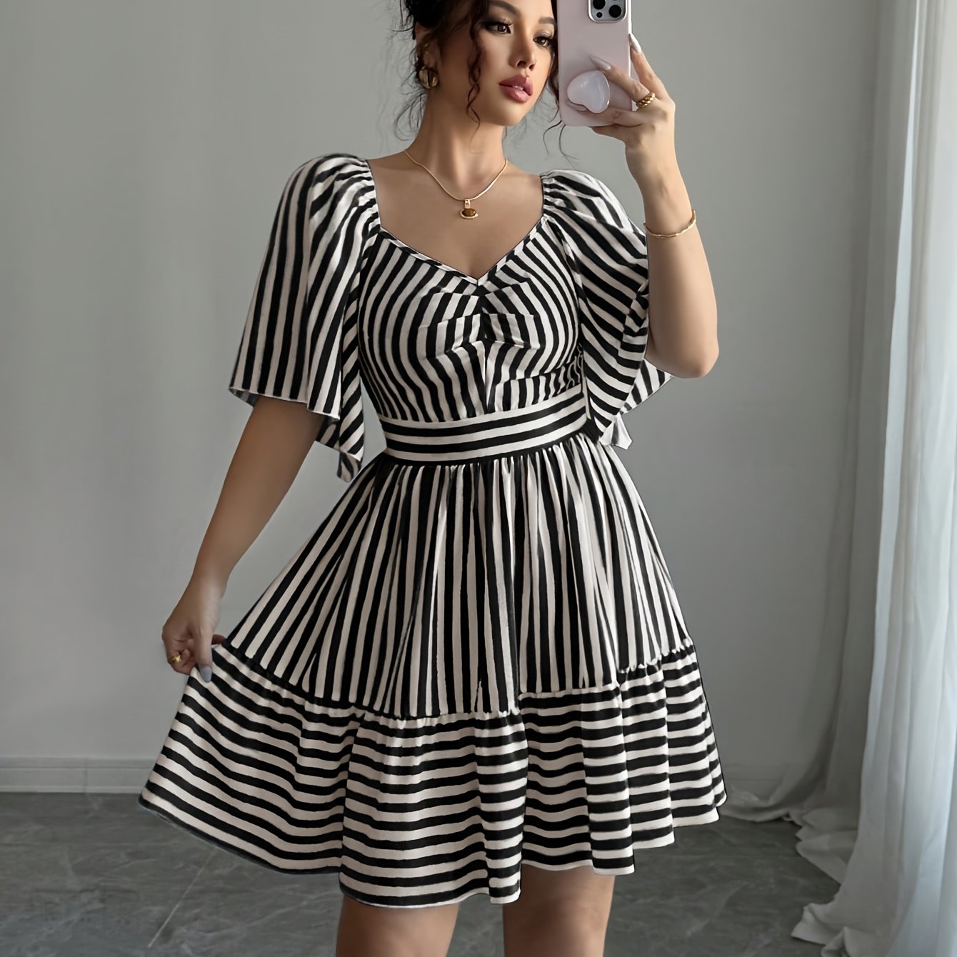TEMU 매직한 비주얼 스트라이프와 대비되는 색상의 드레스