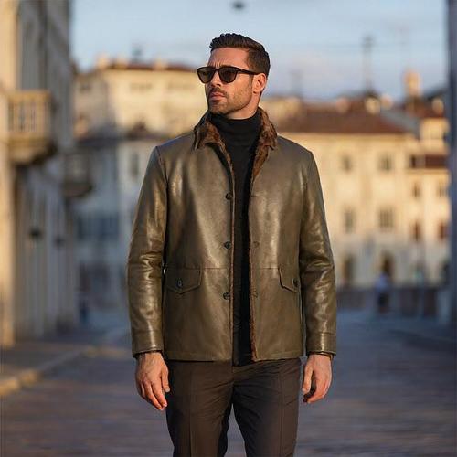 [바쏘옴므]그린 이태리 천연 양가죽 탈착 밍크퍼 구스다운 패딩 점퍼 WSY4UA71AGN_DG