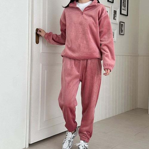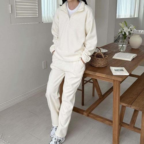 [셀럽하우스]뽀글이 CAEH1959 양털 안감 겨울철 여자 반집업 조거 상하 세트