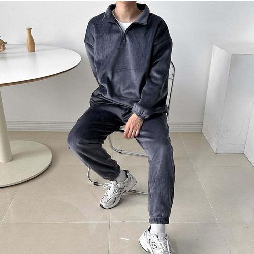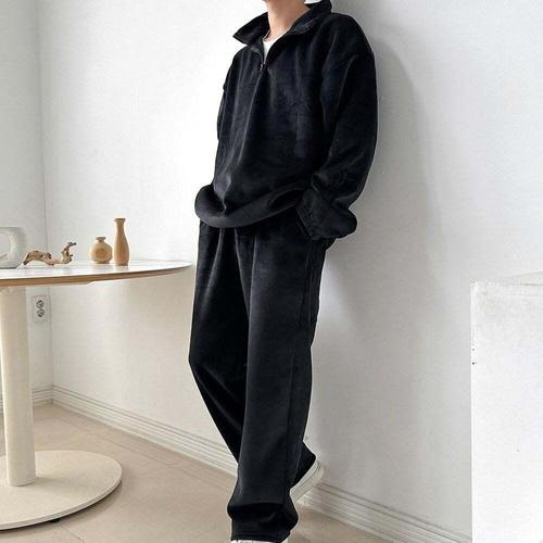 [셀럽하우스]뽀글이 RZGZ4435 양털 안감 남자 반집업 와이드 상하의 세트