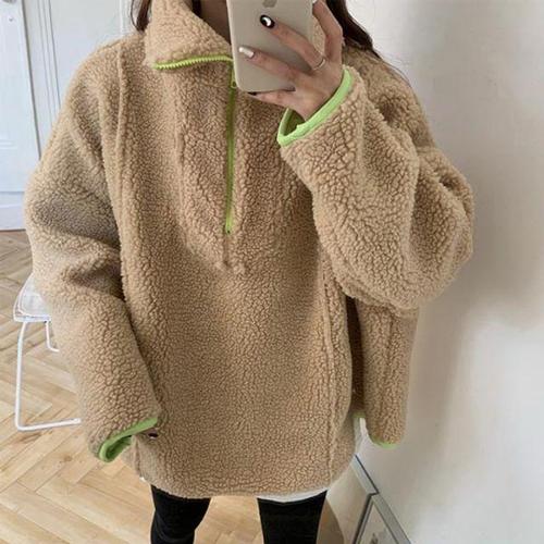 [미라클세븐]여성용 겨울 양털 후리스 반집업 목폴라 오버사이즈 티셔츠