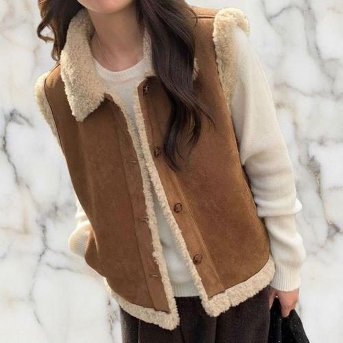 [옷자락]여자 겨울 따뜻한 데일리 레이어드 양털 카라 무스탕 조끼