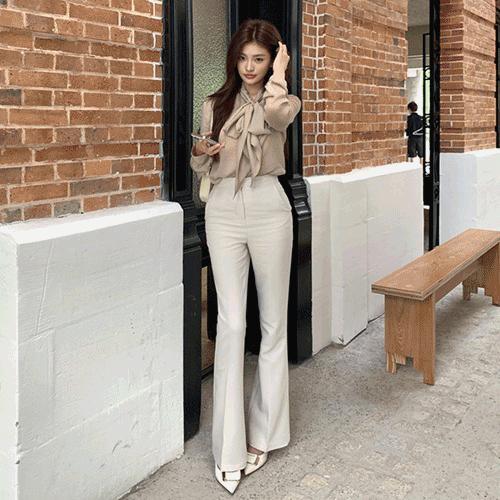 [르뚜앙]다보판 봄 가을 부츠컷 슬랙스 하이웨스트 롱 와이드 팬츠 화이트 베이지 하객룩 세미정장 출근..