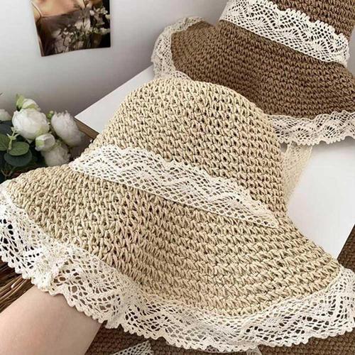 중년 여성 엄마 여름 휴가 썬캡 레이스 밀짚 챙 모자 WFKBXRB