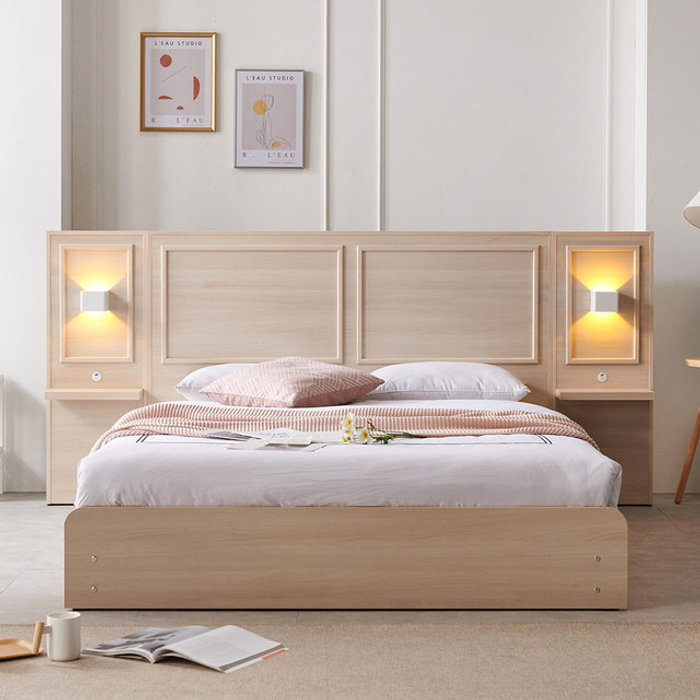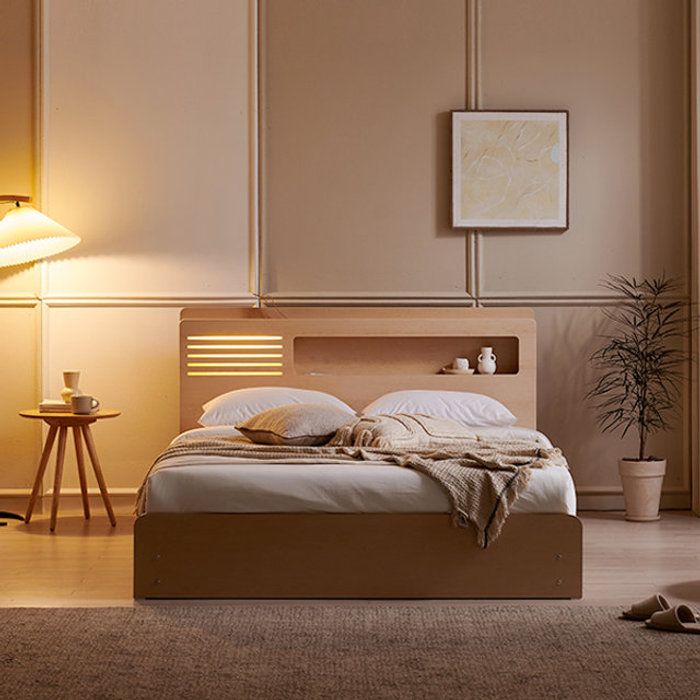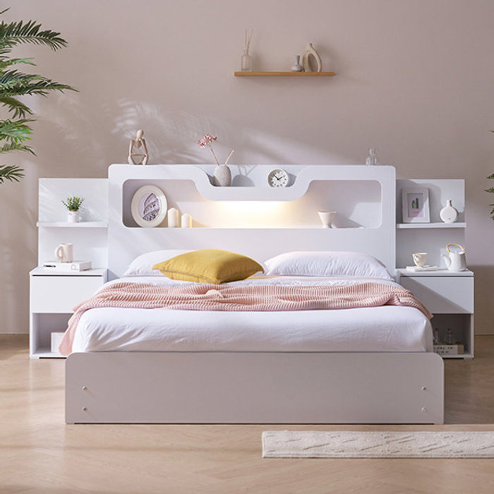 파로마 아벨라 호텔식 LED 멀티수납 침대프레임 Q/K + 협탁 1ea