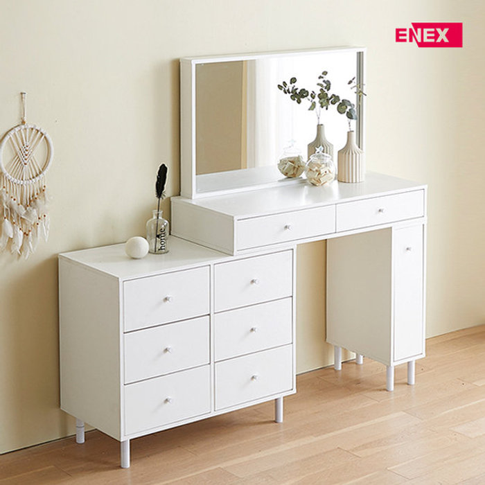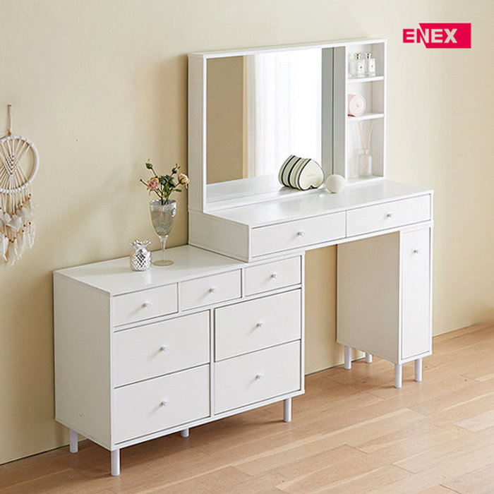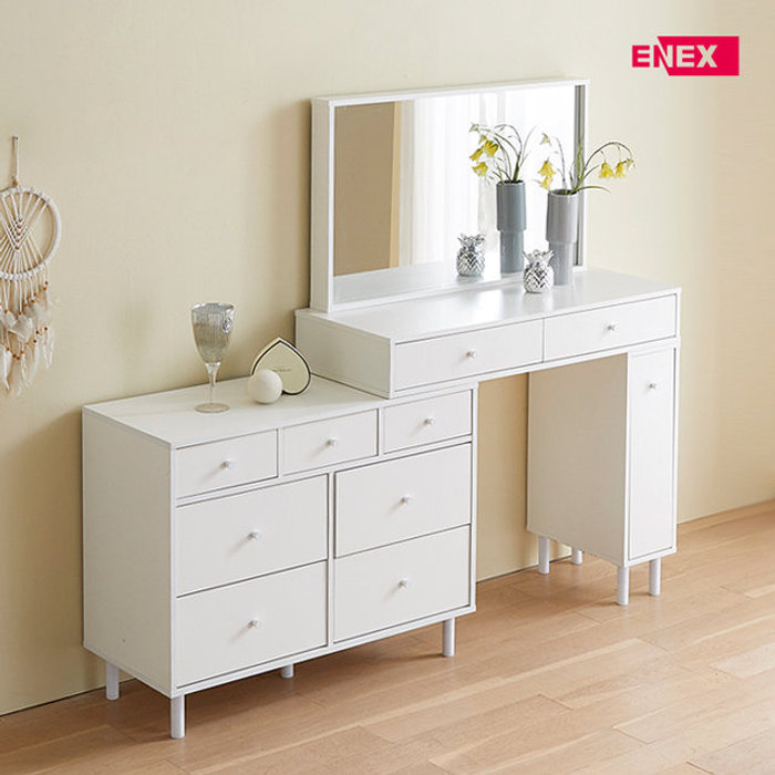 에넥스 스위트 3단7칸서랍 일반거울 확장형 화장대 (넓이110~170cm)