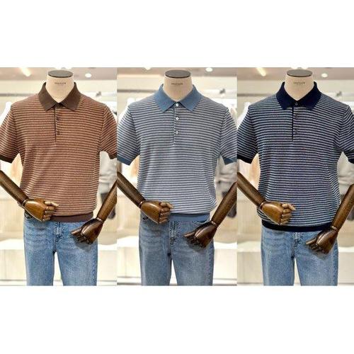 갤러리아_에디션 26S/S 남성 여름 카라배색 멀티스트라이프 반팔 스웨터