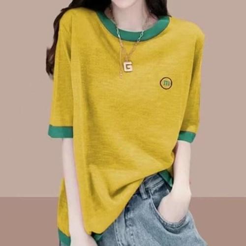 TEMU 우아하고 세련된 신상 봄/여름 라운드넥 루즈핏 캐주얼 출근룩 다용도 여성 티셔츠
