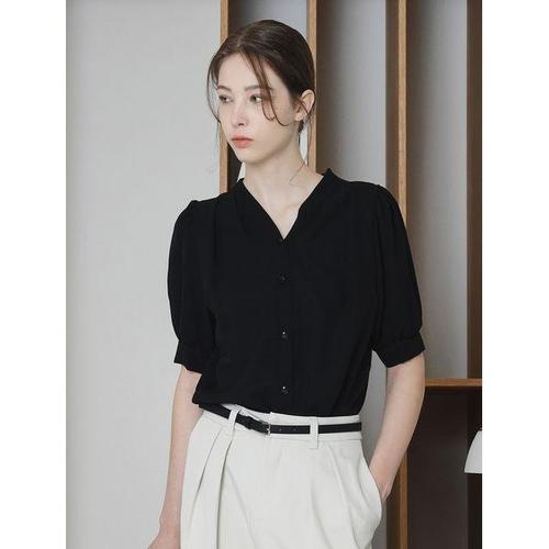 [미니멈에브리데이][미니멈 에브리데이]핀턱 버튼 퍼프 브이넥 블라우스 (EB2BA075D)