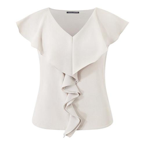 [미니멈에브리데이][미니멈 에브리데이]웨이브 러플 브이넥 민소매 블라우스 (EC2BA001D)