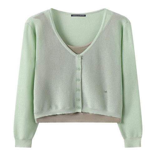 [미니멈에브리데이][미니멈 에브리데이]브이넥 이너 레이어드 컬러 배색 니트 (EC1KT013D)