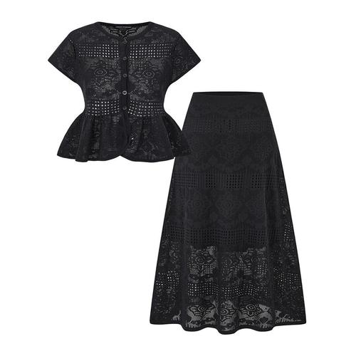 [미니멈에브리데이][미니멈 에브리데이]플라워 펀칭 레이스 가디건 스커트 셋업 (EC2OW013D)