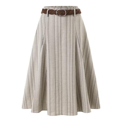[미니멈에브리데이][미니멈 에브리데이]핀스트라이프 벨티드 플레어 롱 스커트 (EC2WH002D)