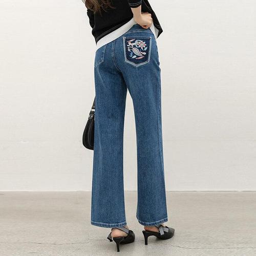 [스타일온미][스타일온미] 로어프 에스닉 페이즐리 자수 포인트 히든밴딩 세미 와이드 데님 팬츠