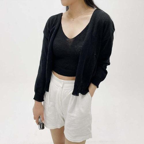 [셀럽하우스]여성 GCGH1409 얇은 크롭나시 가디건 세트 에어컨바람 브이넥