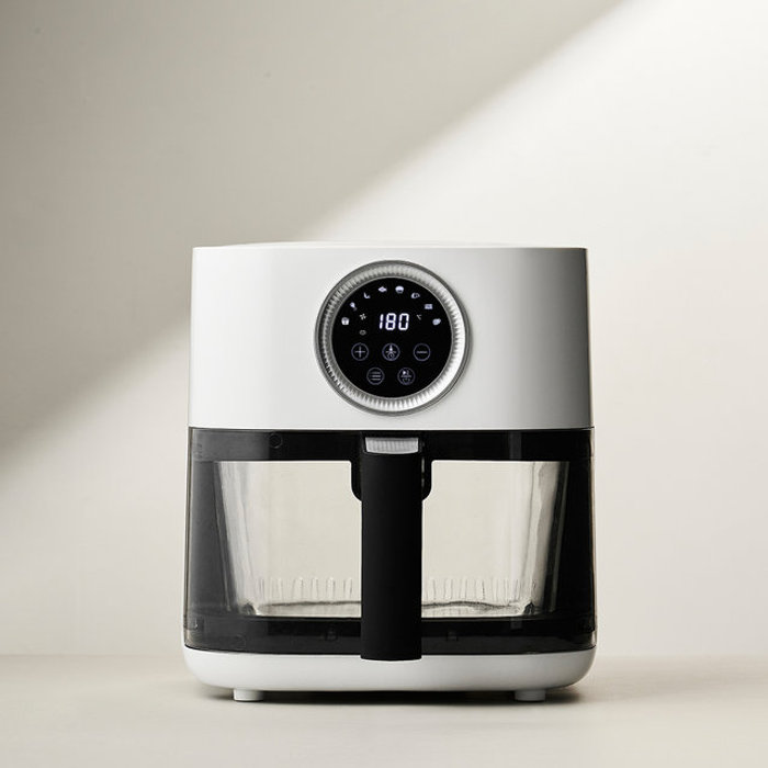 TEMU 대웅모닝컴 올 화이트 심플 다이얼 에어프라이어 4L 투명 바스켓