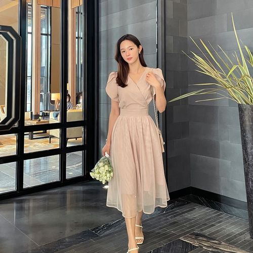 슈팅스타 / 여름 시원한 에이라인 샤랄라 브이넥 시스루 랩 원피스