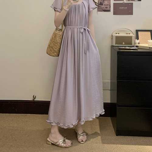 슈팅스타 / 셔링 프릴 로맨틱 반팔 루즈핏 에이라인 롱 원피스