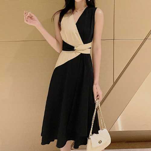 슈팅스타 / 배색 민소매 브이넥 에이라인 원피스1