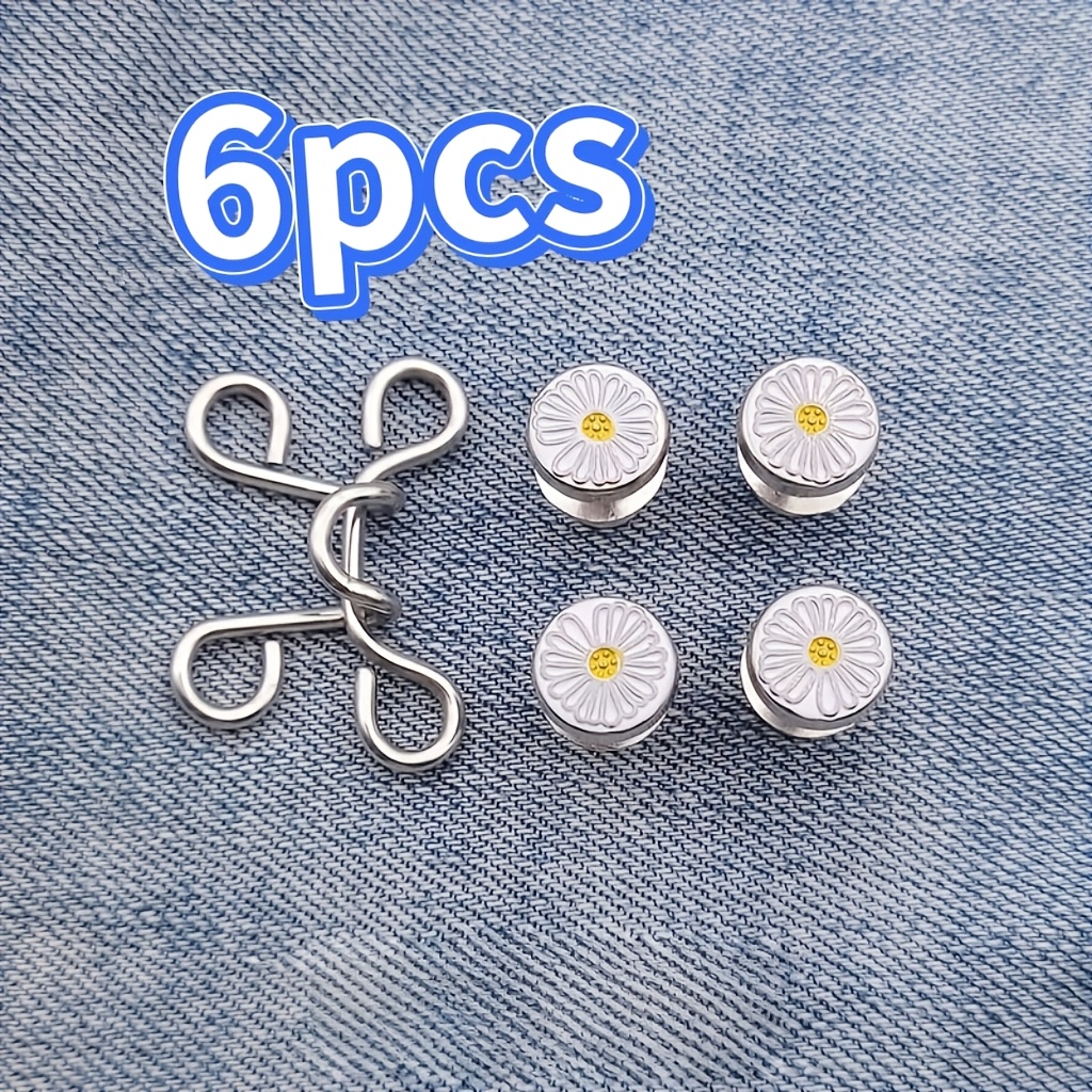 TEMU 청바지 단추 조절기, 작은 데이지 장식 허리밴드 수축기, 바느질 필요 없는 신축성 있는 허리밴드 단추, 바느질 필요 없는 허리밴드 조절기, 스ワ로브스키 라인석 포함 다양한 스타일, 청바지 및 스커트 사이즈 조절 도구, 허리를 즉시 슬림하고 가늘게 만들어줌