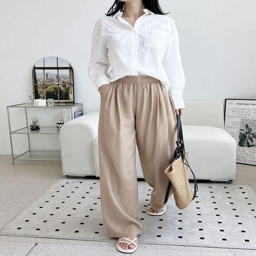 [에이치플러스몰]06여성 밴딩 투턱 와이드팬츠 여름 시원 슬랙스
