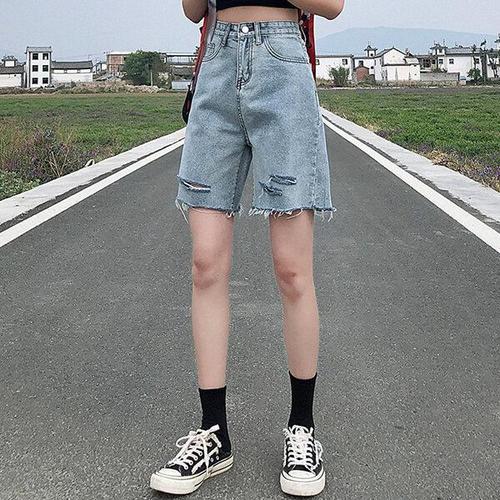 동대문스타일 여자 반바지 탈색워싱 와이드 5부 청반바지 여성 여름 데님