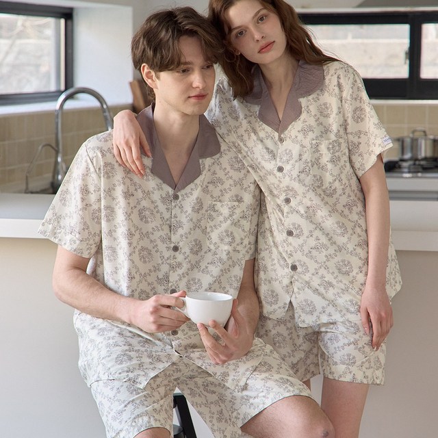 러빙리 커플 잠옷 여름 반팔 홈웨어 남성 여성 요루면 원피스 순면 파자마 상하세트