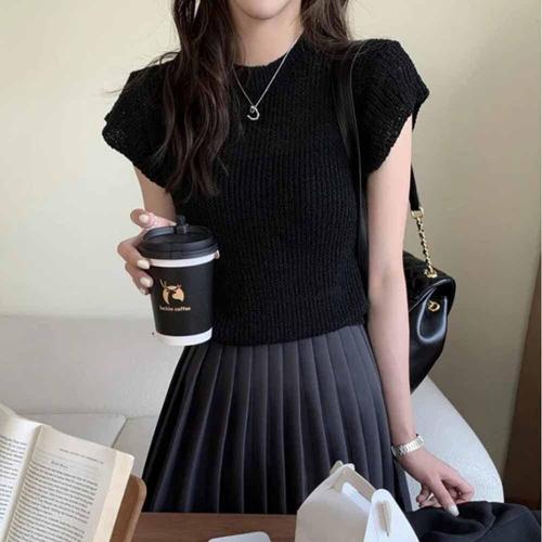 외출 숏티셔츠 여름 여성반팔 니트티 바캉스룩 WFKBWXD