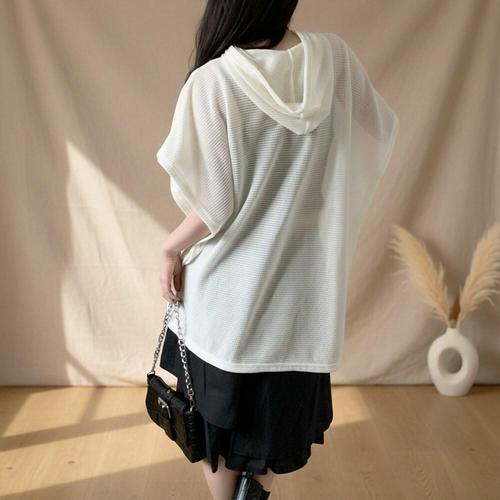 [옷자락]여성 하찌 여름 루즈핏 반팔 후드 니트티