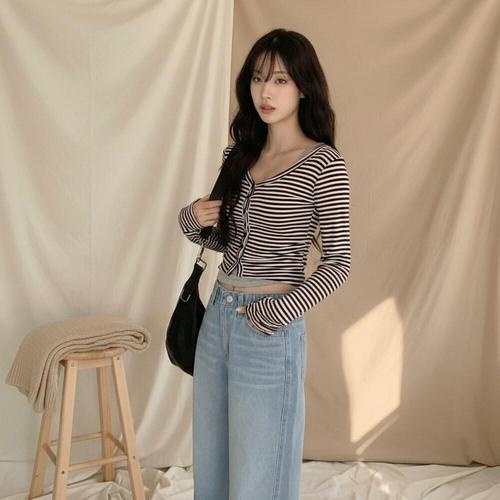 [다잇템]여성 롱슬리브 3컬러 봄여름 줄무늬 가디건