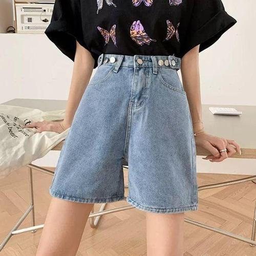 2026 여름 여성 데님 반바지 하이웨이스트 블루 코튼 와이드 레그 숏팬츠 여학생 미니 한국 패션 여성 청반바지