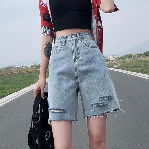 하프팬츠 데님 하이웨스트 여름 찢청 반바지 숏팬츠 여성 WFKBXL3