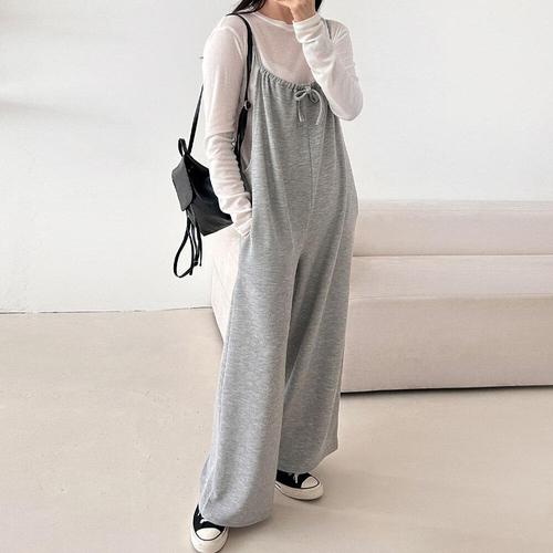 [문에이블]문에이블 여자 여성 봄 여름 가을 데일리 루즈핏 편안한 와이드 팬츠 끈조절 점프수트