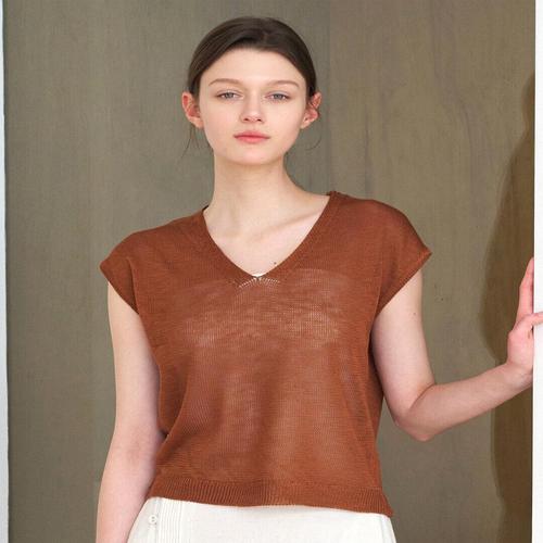 [드리다]여자 여름 브이넥 오픈 네트 린넨 니트 베스트 조끼 40-50대 미시 중년여성 엄마옷 캐주얼 모임
