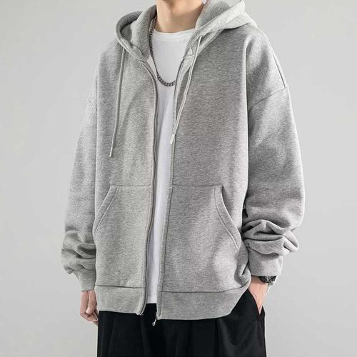 그레이 후드 집업 간절기 아우터 점퍼 베이직 코디 WFJJGAI