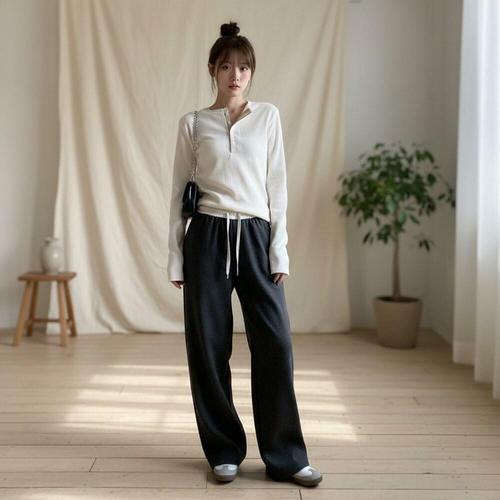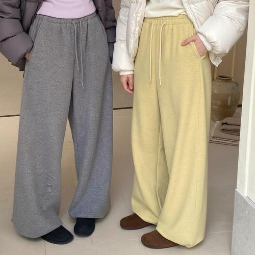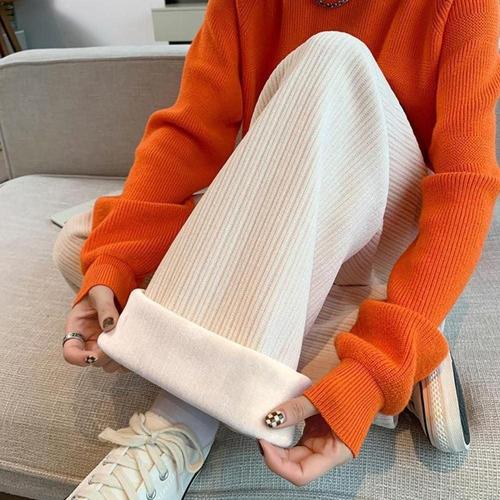 여성용 와이드 레그 캐주얼 팬츠는 따뜻하고 편안합니다. 겨울용 단색 캐주얼 팬츠는 루즈핏입니다
