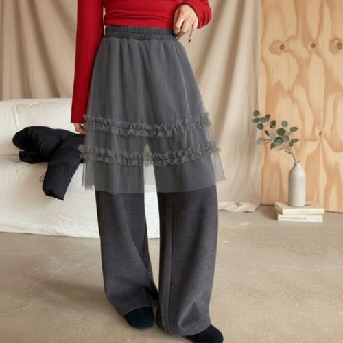 [옷자락]여성 겨울 기모 레이어드 프릴 망사 와이드 팬츠
