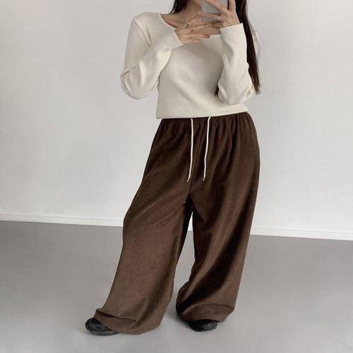 [옷자락] 여자 밴딩 절개 골덴 와이드 팬츠