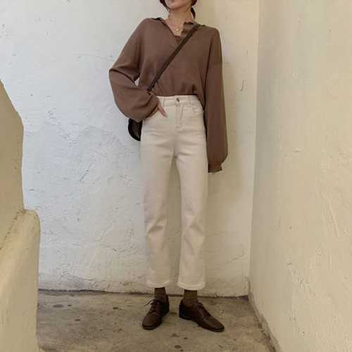 엘케이트 여성 기모안감 데님팬츠 일자핏 겨울바지 면 데님 LPP029