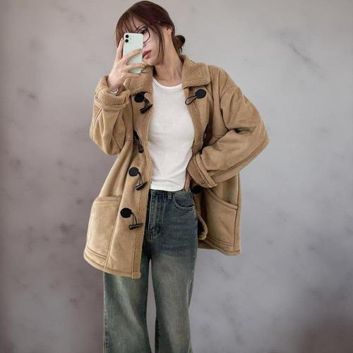 [옷자락]여성 겨울 따뜻한 스웨이드 덤블 짧은 코트