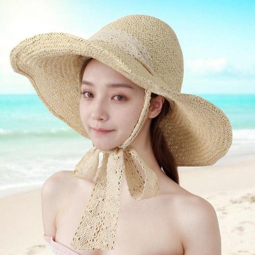 레이스 여성 밀짚모자 비치모자 바캉스 썬캡 WFIXOFZ