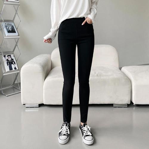 잘빠진 여성용 루아 슬림 피치기모 밴딩 보온 스키니 팬츠