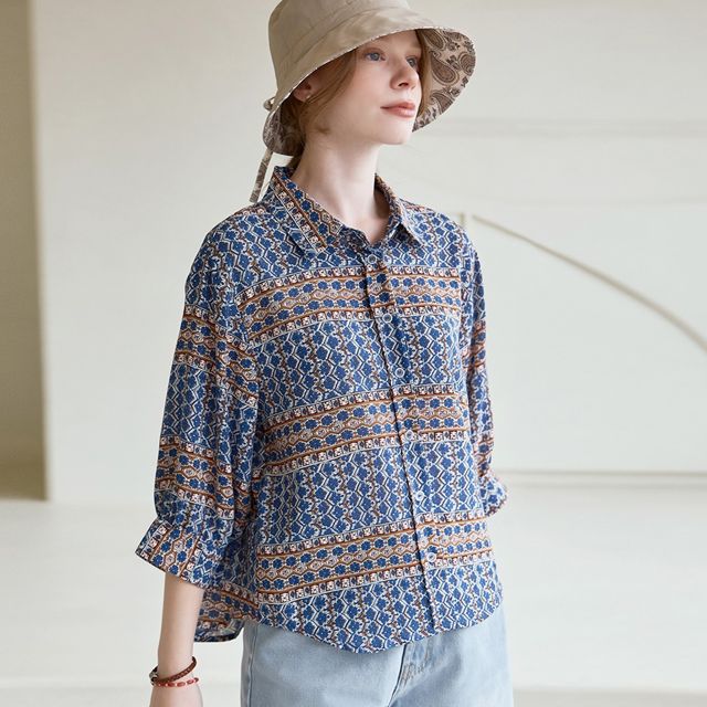[안지크]프린팅린넨티블라우스 AJ2BL5600