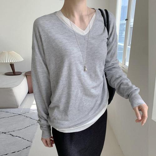 [유야]여성 간절기 얇은 브이넥 니트 긴팔 티셔츠 -FNT0176- 봄 가을