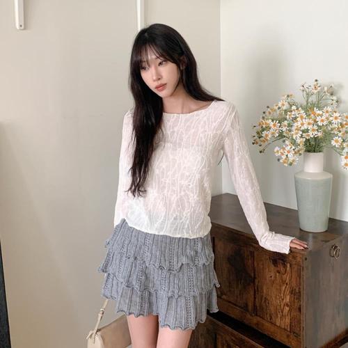 [옷자락]여자 봄여름 얇은 시스루 레이스 긴팔티